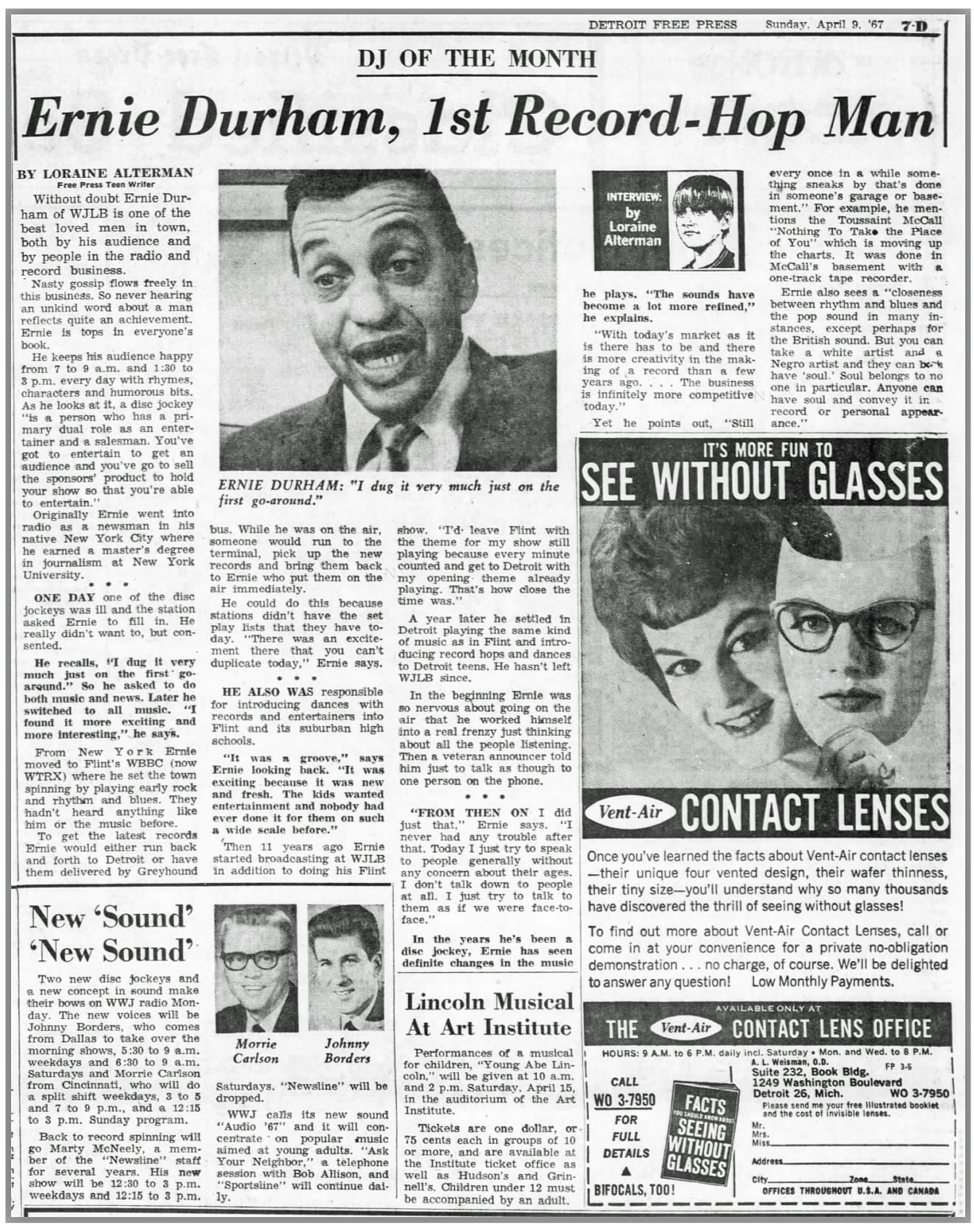 Allen wrote lyrics and produced the Jones jingles. Future plans call for psychedelic jingles. Station has brought in new equipment and is building up its news department. In Martha Jean Steinberg and Ernie Durham, Allen felt he had two of the top air personalities of any station in the nation. “Now, with the new equipment, we find we have everything to work with. END