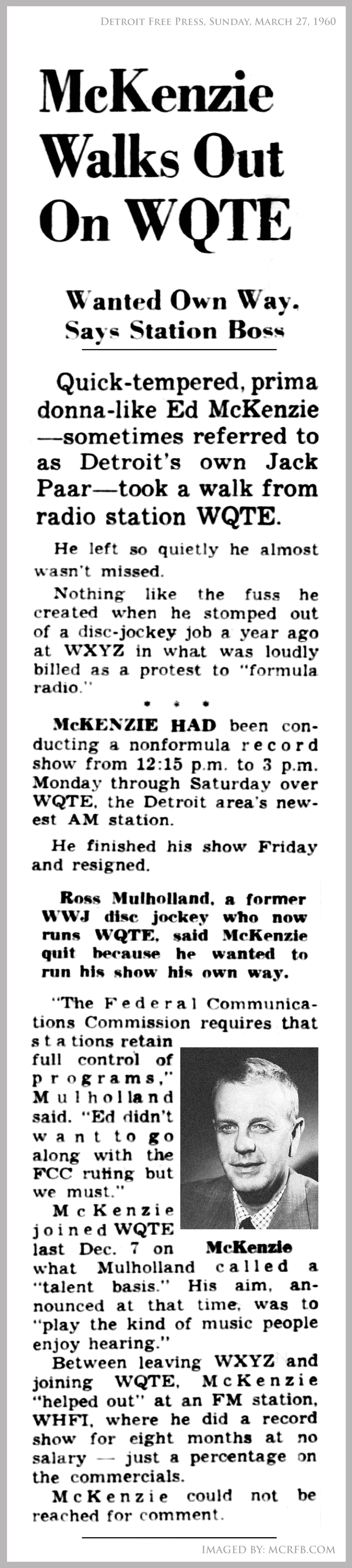 The above featured Detroit Free Press article was digitally re-imaged by Motor City Radio Flashbacks
