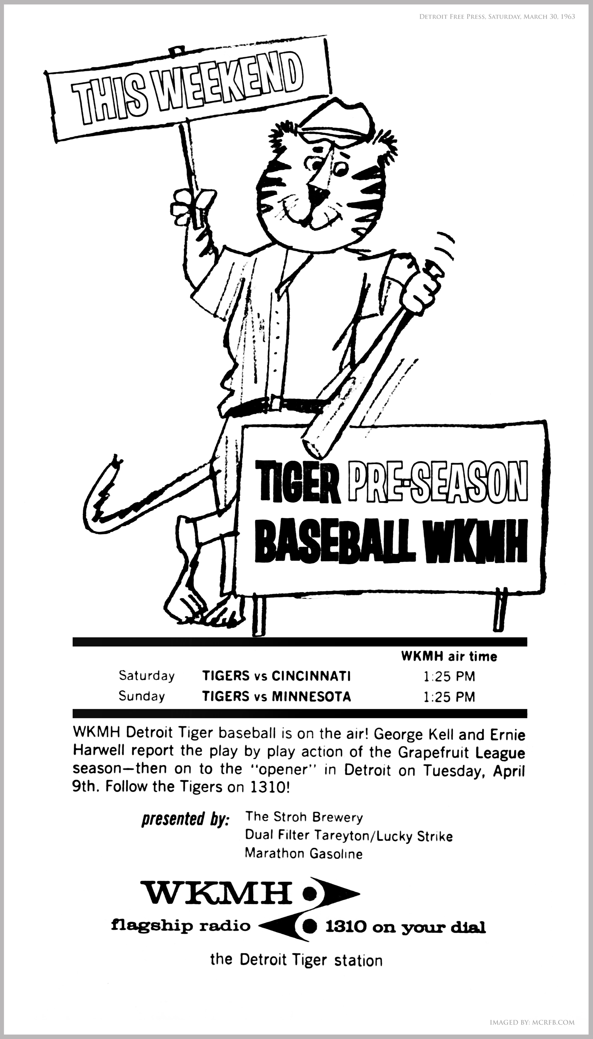 MCRFB Note: Special THANKS to our friend, John Bartony (a.k.a. Jukebox John) St. Clair Shores, Michigan, for providing the above Detroit Free Press WKMH 1310 ads (February 1963) for this site, as featured today.