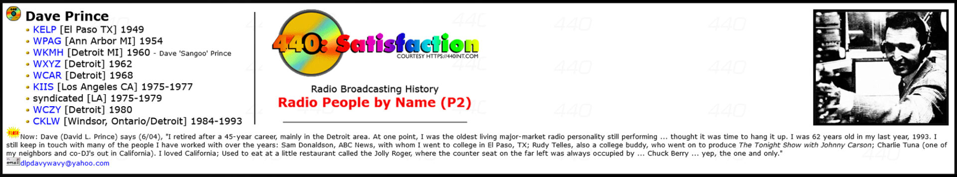 Dave was one of the legends of Detroit radio, 45 years in broadcasting. Having worked at WKMH, WXYZ, WCAR, WCZY, CKLW. For a short time, he was also TV host of Club 1270 on Channel 7.